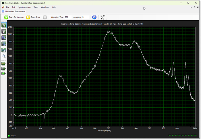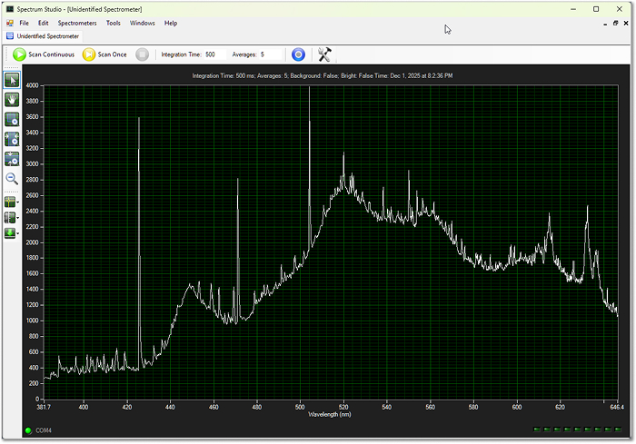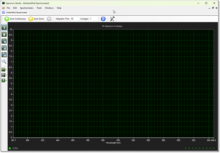 - Click “Detect Spectrometer” in the toolbar.